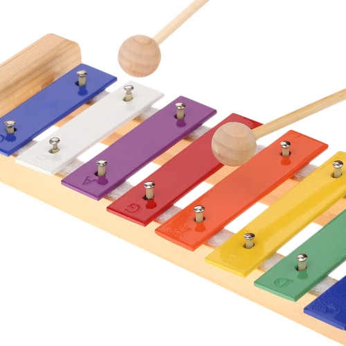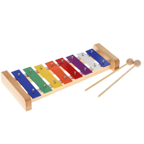 ammoon Wood Pine Xylophone 8-Note 3mm Colorful Aluminum Plate C Key Percussion Toddle Kid Musical Toy